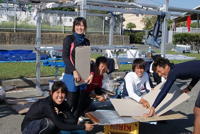 今回、同志社大学体育会ヨット部の蔵道監督と7名の部員がスタッフとしてお手伝いしました。
