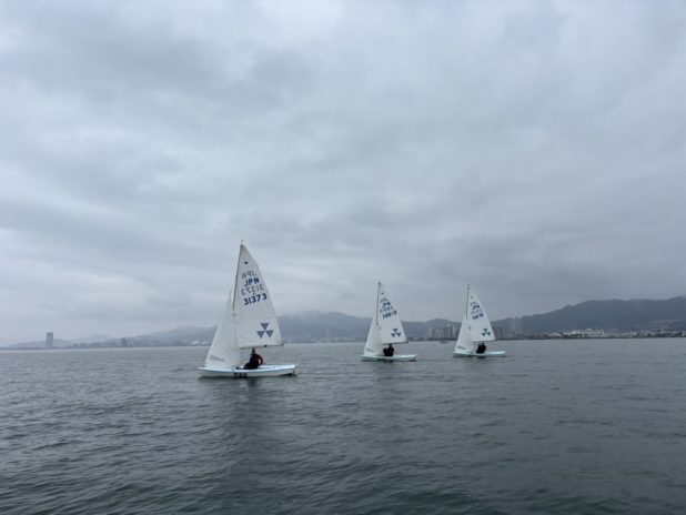 チームレースはとても面白いフォーマットでした。自分がうまくスタートできれば、味方を助けるために、相手に対してルールやブランケなどを駆使して順位をコントロールし、スタートで失敗しても、前にいる味方が何とか助けてくれました。いつものフリートレースとは違い、うまくいかないことがあっても、常に味方からの支援をもらうことができ、相手チームも積極的に攻撃しに来るため、いつもよりも刺激的なレースをすることができました。3 チームで協力する全日本インカレと同じ部分はありましたが、全日本インカレ以上に助け合う部分が重要で、常に味方の位置と敵の位置を確認してレースをしたのがとても面白かったです。フリートレースには必要不可欠であるスピードも、いつもより優先度が低く、ヘルムスマンをあまりやったことがない人でも楽しむことができ、活躍できるやり方であると思いました。