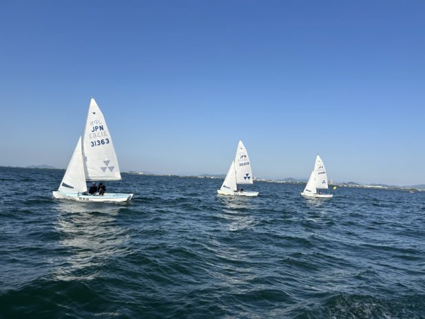 470級に乗り始めて早くも2ヶ月が経ちました。まだまだ慣れない事ばかりで先輩方から新しいことを教わる日々です。その中でも最近では、レースシーズンに向けてスタートに重点を置いた練習に励んでいます。高校時代とは違い、レベルの高い艇団の中でのスタートに苦戦しつつも、1つ1つ改善点を見つけながらベストなスタートができるように試行錯誤しています。