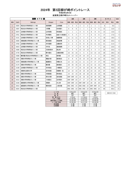 本日は、1〜2m/sの風の中、ポイントレースが開催され、両クラスともに3レースが実施されました。