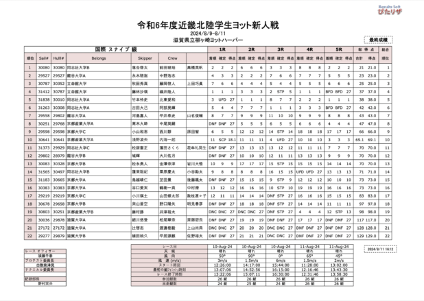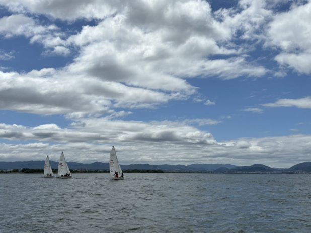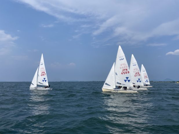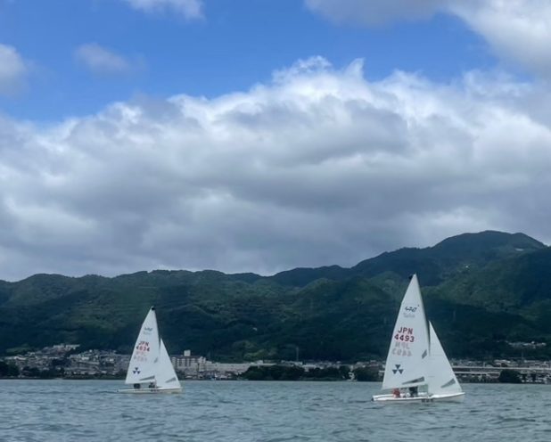 8月に入り、いよいよ遠征シーズンが始まりました。スナイプチームは全日本スナイプに出場するため、昨日から鳥取県境港に来て練習しています。境港の海面はうねりが大きく、風も安定して吹いています。琵琶湖とは大きく異なるコンディションに苦戦しながらも、充実した練習ができています。