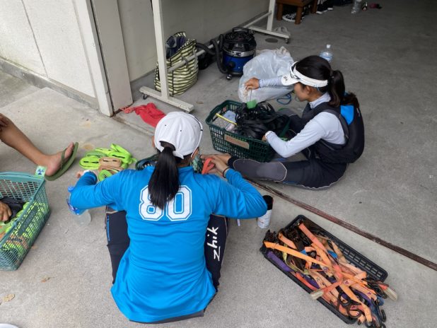 風が不安定で下級生にとっては難しい海面ではありましたが、その中でもバランスの取り方やコントロールロープのトリムなど風にあった練習を行いました。