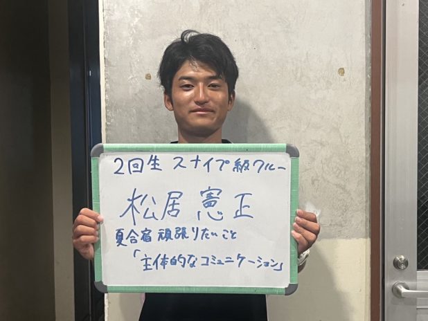 私は、この夏は全日本スナイプと個人戦本戦に出場させていただくことになりました。特に個人戦本戦はインカレで優勝するための正念場であると考えています。昨年のインカレが終わって代替わりした際に、スナイプチームでは個人戦で3艇が入賞することを中間目標としました。これを目標としたのは、個人戦入賞レベルの艇が3艇揃っていないとインカレで勝てないと考えたためです。