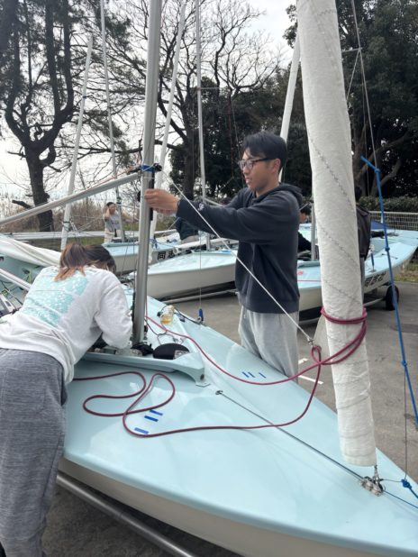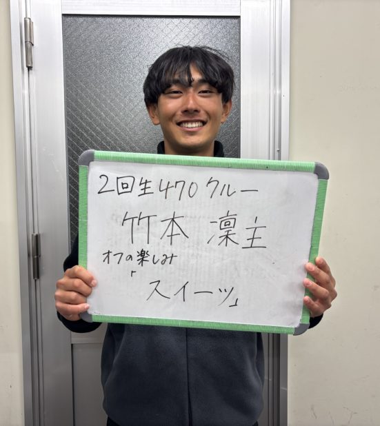 私は、この春合宿で動作の基礎を固めるとともに、ヘルムスマンとのコミュニケーションにおいて、周りの情報を伝えることを目標にしていました。しかし、直近で行われたポイントレースや同志社ウィークでは、普段の練習で行っていた動作を十分に再現することができず、動作ミスや周りの情報を伝えることが不十分なことがありました。これからレースシーズンに入っていく中で、現状としてはまだまだ足りない部分が多くあります。そのため、練習時の取り組み方を改善し、受け身で乗るのではなく自発的にヨットに乗ることを意識し、より多くのことを吸収し、レースに活かせるよう努力してまいります。