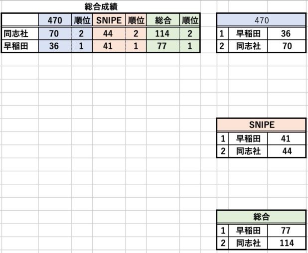 本日は3-7m/sの風の中、470級は帆走練習、スタート練習、コース練習、スナイプ級は帆走練習、コース練習を行いました。本日は両クラス共に他大学や社会人の方と合同コース練習を行いました。北風と西風が入り、風が入り乱れていたためコース選択が難しい場面が多くありました。明日のポイントレースは来週のBSCにつながるようなレースになるよう全艇取り組んでまいります。