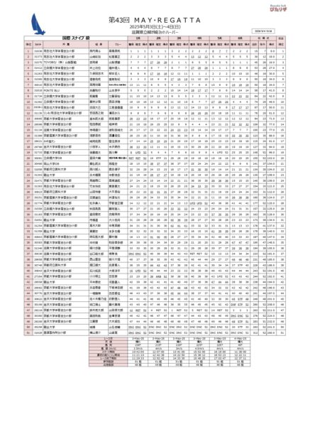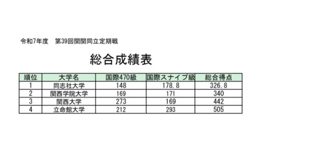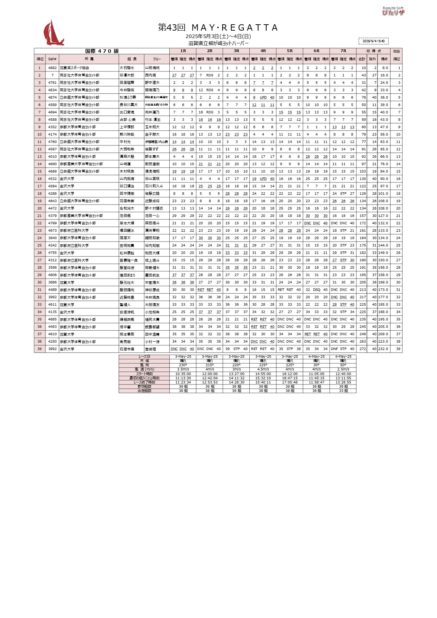本日は3-7m/sの風の中6レースが行われました。昨日のレースで特にスナイプ級は点差が離されている状況であったため朝からチーム全体でしっかりと気持ちを入れて望みました。大きな潮の流れやシフトにより苦戦する場面もありましたが、両クラス共に前を走るシーンが多く、良い雰囲気で進めることができました。結果優勝することはできましたがチームとして課題が多く残る大会とったため今後の早稲田戦、オリンピックウィークに向けて各艇がしっかりと調整を行い、集中して取り組んでまいります。