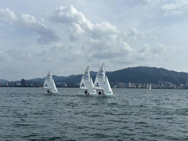羽咋では2-4m/sの風の中、計4レースが行われました。途中大きく風が振れる場面がありましたが、比較的安定した風の中でのレースとなりました。今週での経験を来週の個人戦予選に活かし、より多くの艇が通ることができるよう取り組んでまいります。