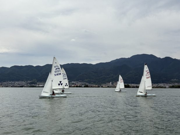 本日は1-3m/sの風の中、470級は2レース、スナイプ級は1レースが行われました。午前の出艇後は北風が入っており、470級は北風の中でレースが行われました。スナイプ級はゼネリコが続き、風待ちの後に三井寺の風で14時頃からレースが行われました。予測の難しい風でしたが、全艇が試行錯誤しレースに臨みました。権利を取れた艇は全日本470、全日本スナイプに向けて準備を進めてまいります。