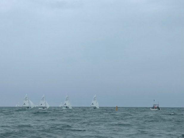 本日は6-8m/sの南西の風の中、2レースが行われました。少しでも前を走れるように必死にハイクアウトをし続けました。