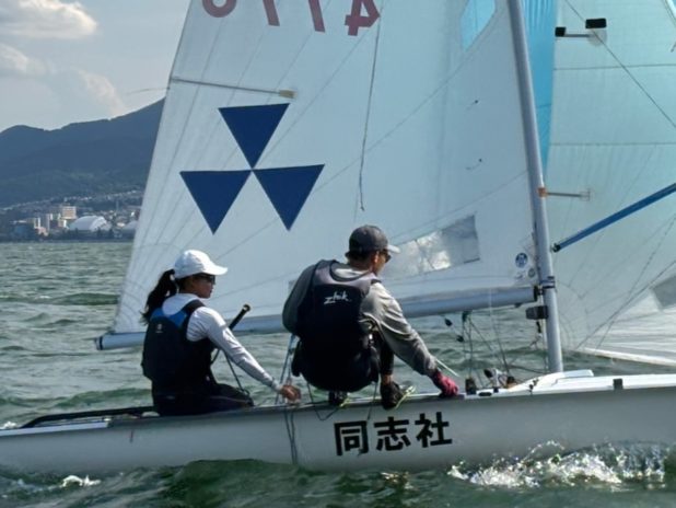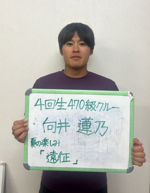 レース中は緊張で風向きやマークの位置を確認する余裕もありませんでしたが、いざレースが始まると練習では感じられなかった他艇との駆け引きや、風のわずかな変化や自身の動作ミスなどによる順位の上下を身をもって体験しました。順位だけで見れば占部のおかげもあり、いい結果となりましたが、自身の動作などの面では思うようにできず、悔しい場面も多くありました。その分、改善点や自分の課題がはっきり見えたため、これからの夏合宿を新人戦での気付きも踏まえ、有意義なものにできるようより一層練習に励みたいと思います。