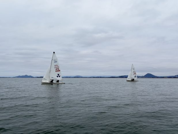 本日は1-2m/sの風の中、470級はホイスト練習、他大学との合同コース練習を、スナイプ級はコース練習、マッチレースを行いました。普段の練習に少しの工夫を加えた練習を行うことで、各々が抱える課題を解決するための機会となりました。今日気づいたことや見つけた解決策を、明日以降の練習で実践できるよう取り組んでまいります。