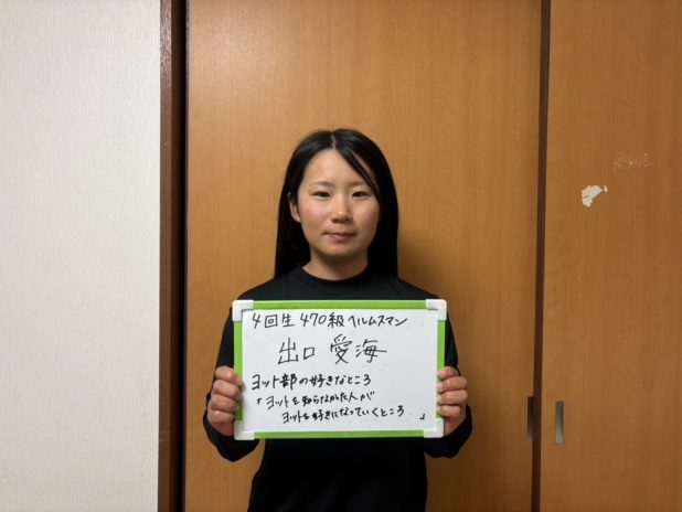 また、この力は社会に出てからも必要不可欠であると考えています。そのため、やるべきことを整理し、締切や重要度に応じて優先順位をつけ、後回しにせず行動することを常に意識していきたいです。この姿勢は、同志社大学体育会ヨット部が掲げている「人間形成」という目的にも通じるものだと考えています。