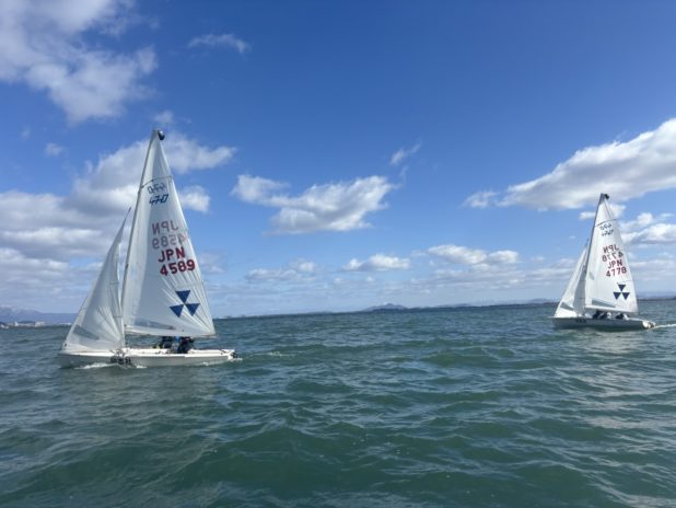 本日は3-7m/sの風の中、470級は帆走練習、マーク回航、コース練習、スナイプ級は帆走練習、コース練習を行いました。1日を通して、強い風が吹いていたため、より海でのレースを想定した練習をすることができ、新たな課題を見つける良い機会となりました。