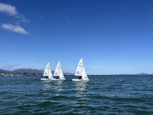 例年のような厳しい寒さと強風コンディションとは異なり、今年は暖かく穏やかなコンディションで春合宿が始まりました。春合宿では、普段の練習より得た技術や感覚を定着させやすくなるため、この期間にどれだけ質の高い練習量を積めるかが重要になります。体調管理にも気を配り、ただこなすだけの練習にならないよう、高い意識を持って練習に臨んでいきたいです。また、早くも新1回生のセレクションが部活動に参加しています。新しい仲間が増えたとともに、全日本インカレレギュラーを狙うライバルにもなります。1回生に負けられないという熱い気持ちのもと練習に取り組めています。